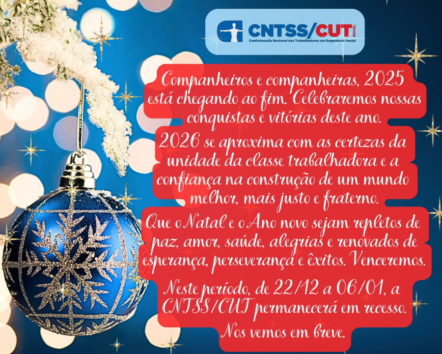 A perseverança e a ousadia da classe trabalhadora garantiram importantes vitórias em 2025. Que a unidade dos trabalhadores garanta avanços ainda maiores em 2026. Boas Festas.
